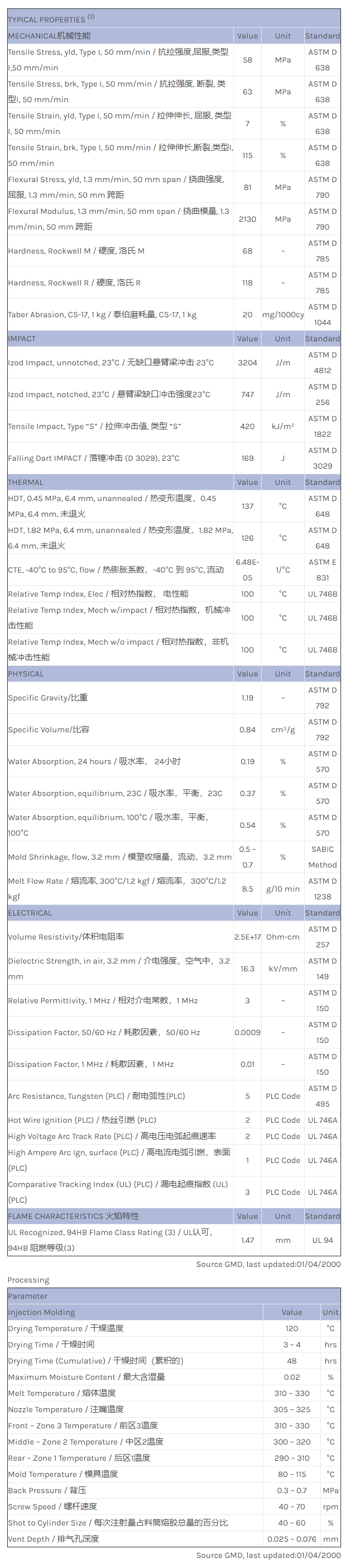 应用范围: 产品描述 LEXAN PC 191物性表 非卤化物。熔体流动速率MFR:8.5。高抗冲击性。厚壁制件。仅有不透明色