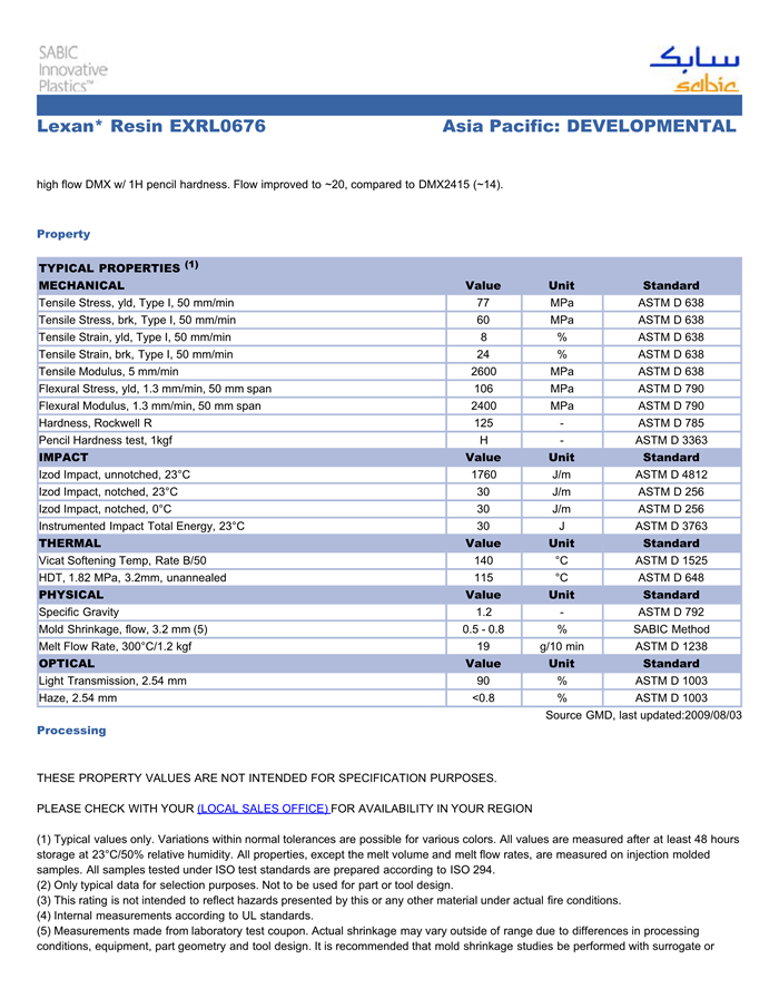 LEXAN PC EXRL0676物性表