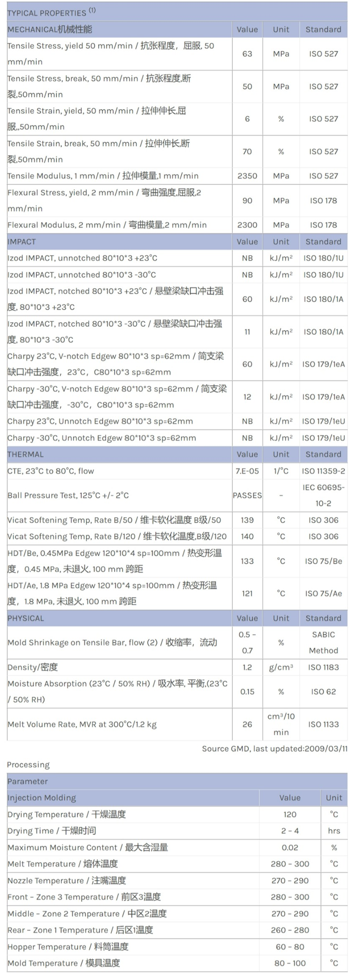 应用范围: 产品描述 LEXAN PC 905A物性表 Lexan* 905A is a high flow, non-filled, injection moldable grade of non-chlorinated, non-brominated flame retardant systems that has an UL-94 V0 rating at 3mm. Lexan* 905A ha