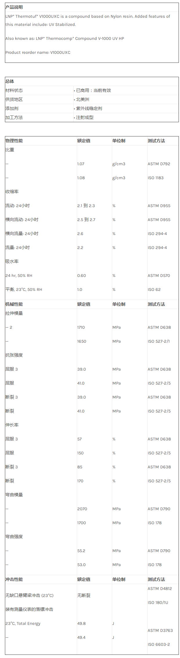 应用范围:产品描述LNP THERMOCOMP V1000UXC物性表