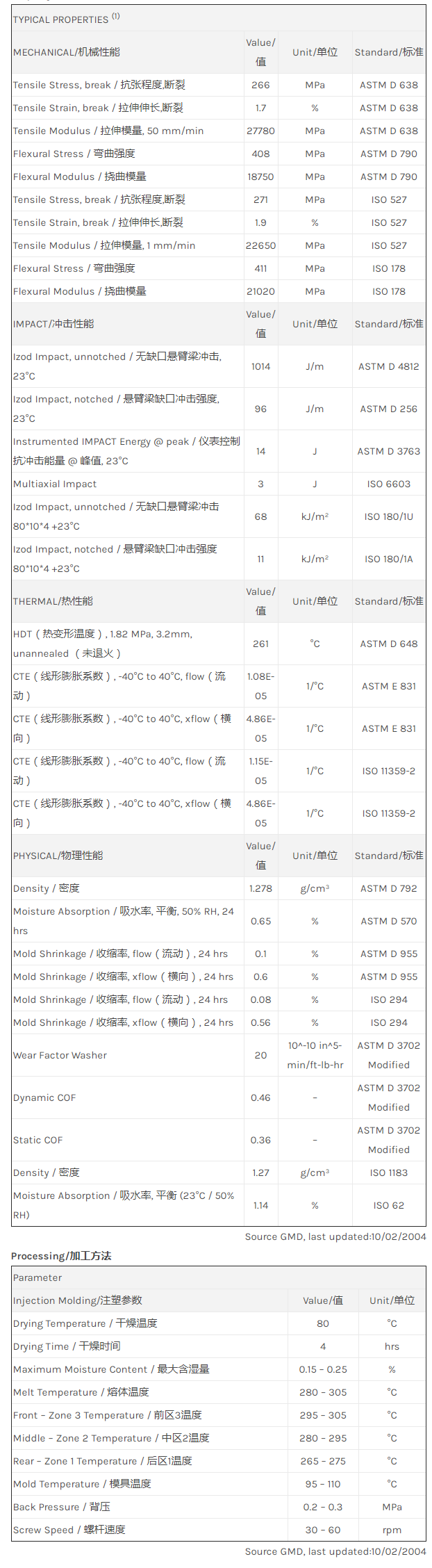 “中山LNP THERMOCOMP RC006H是一种聚酰胺66(尼龙66)产品,含有的填充物为30%碳纤维增强材料,可以通过注射成型进行加工。