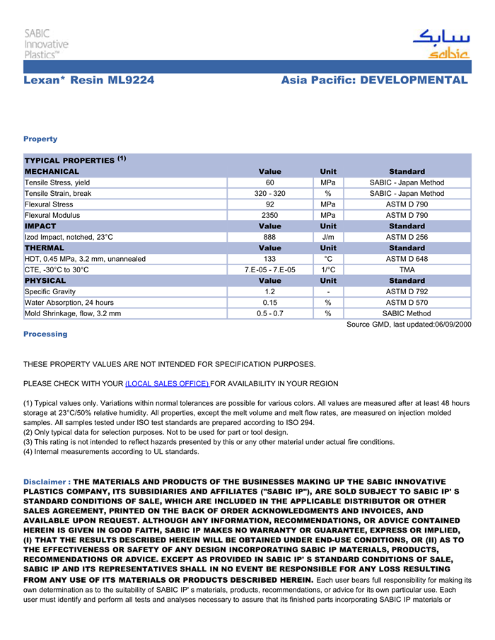 LEXAN PC ML9224物性表
