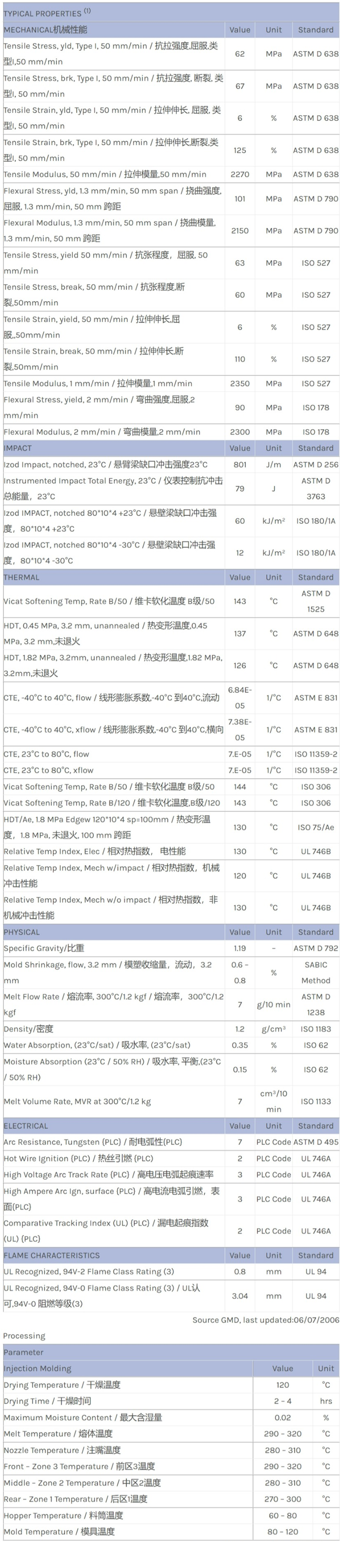应用范围:产品描述LEXAN PC EXRL0277物性表Lexan* EXRL0277 Polycarbonate (PC) resin is a non-filled, injection moldable grade. This halogen-free flame retardant PC has an UL-94 V0 rating. It is intended to conform with