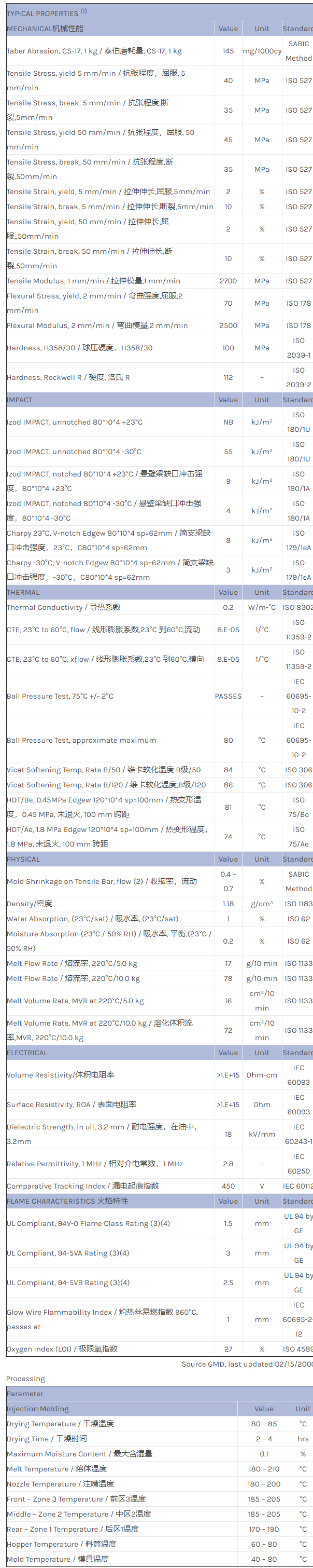 应用范围:产品描述CYCOLAC ABS XS157S物性表CYCOLAC XS157S is a high flow, flame retardant ABS injection moulding grade with excellent processability. It has been developed for the electrical industry.