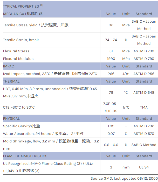 应用范围:产品描述NORYL PPO PX2806物性表