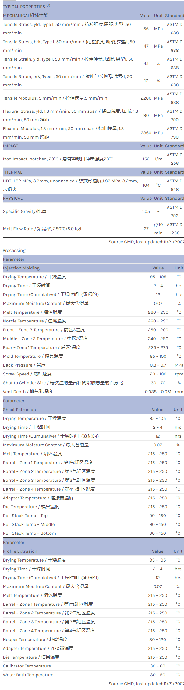 NORYL EXNL0303 resin是一种聚苯醚+PS(PPE+PS)材料,加工方式为:片材挤出成型、型材挤出成型或注射成型。