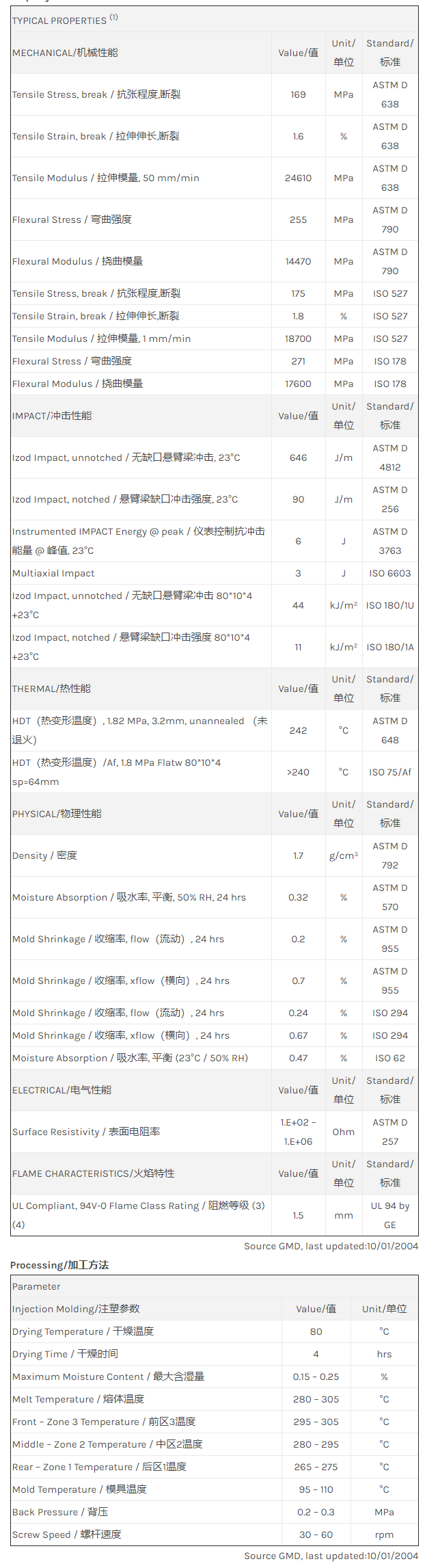 应用范围: 产品描述 LNP Statkon RX05488物性表 “LNP STAT-KON RX05488是一种聚酰胺66(尼龙66)产品,含有的填充物为玻璃、碳纤维增强材料,可以通过注射成型进行加工。 特性包括: 阻燃/额定火焰 Flame Retardant 传导性 润滑” LNP STAT-KON* RX05488 is a compound based on Nylon 66
