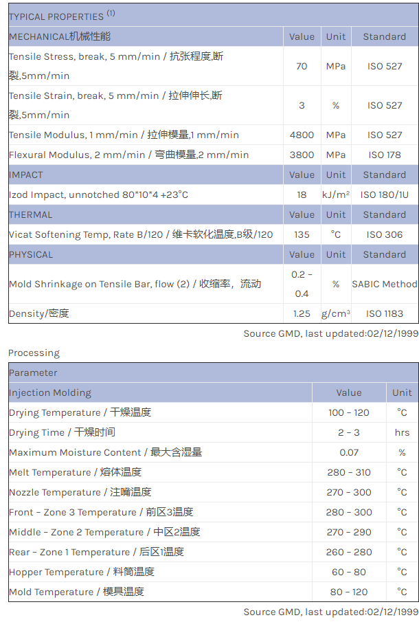 应用范围:产品描述NORYL PPO NR100G2物性表REMEX NR100G2 is a 20% glass fibre reinforced material used for injection moulding applications. The product is based on recycled NORYL material and being optimized with virgin