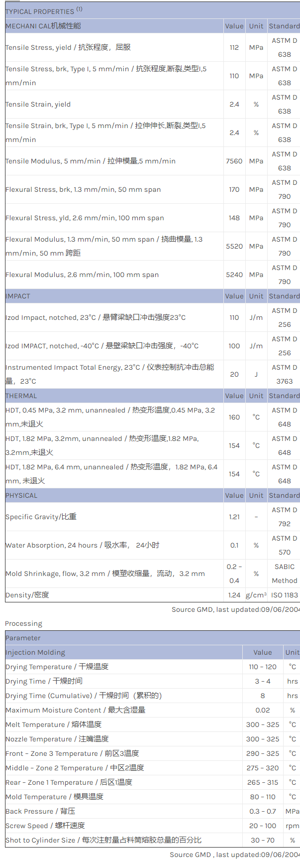 NORYL PX4605 resin是一种聚苯醚+PS(PPE+PS)产品,含有的填充物为20%玻璃纤维增强材料,可以通过注射成型进行加工。