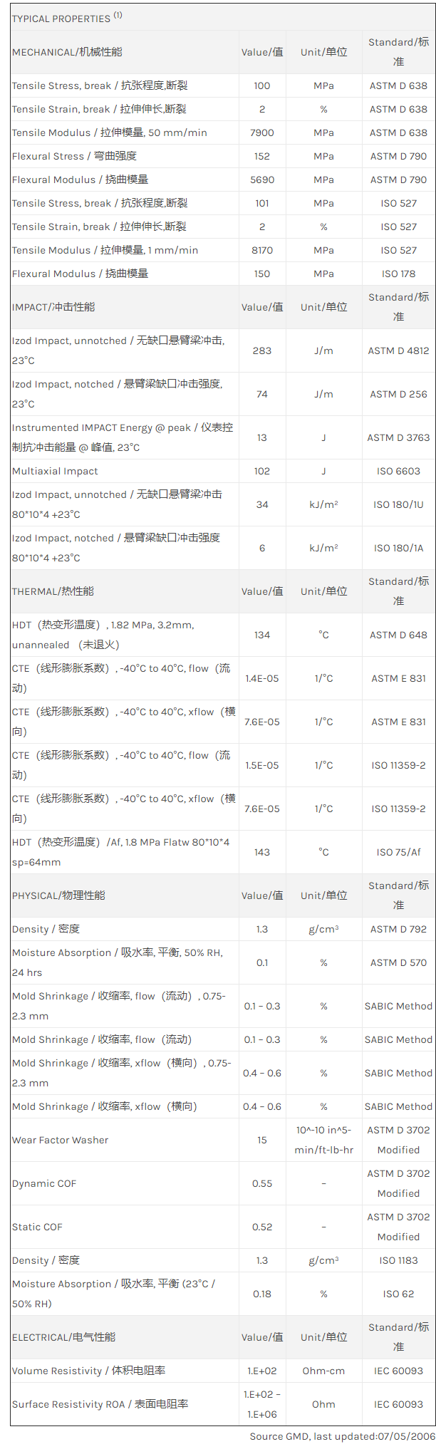 应用范围: 产品描述 LNP Statkon DEL22P物性表 “LNP STAT-KON DEL22P是一种聚碳酸酯(PC)产品,含有的填充物为10%碳纤维增强材料,可以通过注射成型进行加工。 特性包括: 传导性 加工性能良好 耐磨 润滑” LNP STAT-KON* DEL22P is a compound based on Polycarbonate resin containin
