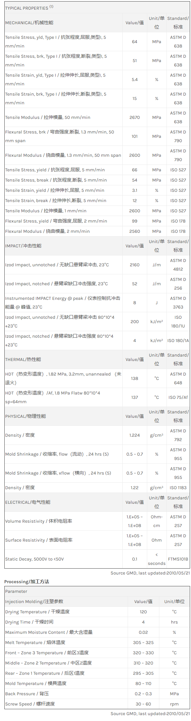 应用范围: 产品描述 LNP Statkon DX09301C物性表 LNP STAT-KON DX09303C是一种聚碳酸酯(PC)材料,含有的填充物为碳纤维增强材料,加工方式为:注射成型。 相关颜色色号:DX09301C-BKNAT Low Ionic, Low Outgassing, Low LPC and ESD safe Polycarbonate compound suitable f