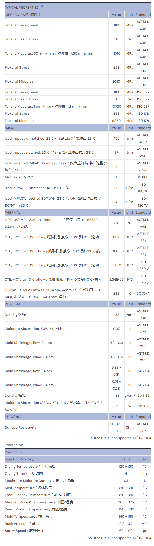 应用范围:产品描述LNP STATKON LC-1003 EM物性表LNP STAT-KON* LC-1003 EM is a compound based on Polyetheretherketone resin containing Carbon Fiber. Added features of this material include: Easy Molding.