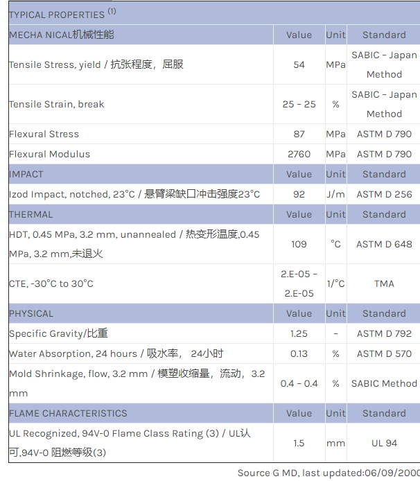中山NORYL PPO PX1340物性表