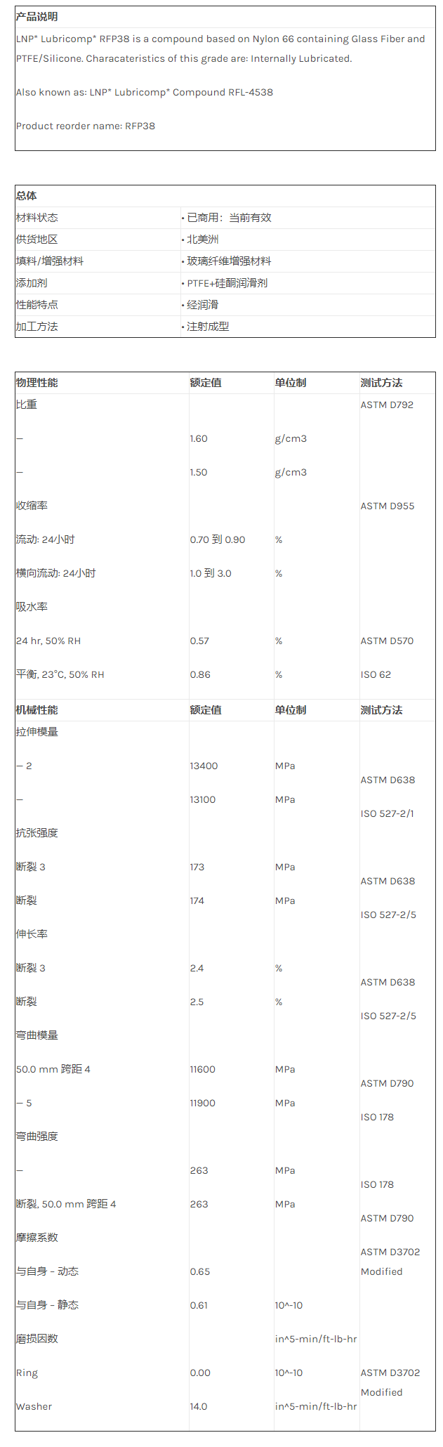 应用范围:产品描述LNP LUBRICOMP RFP38物性表