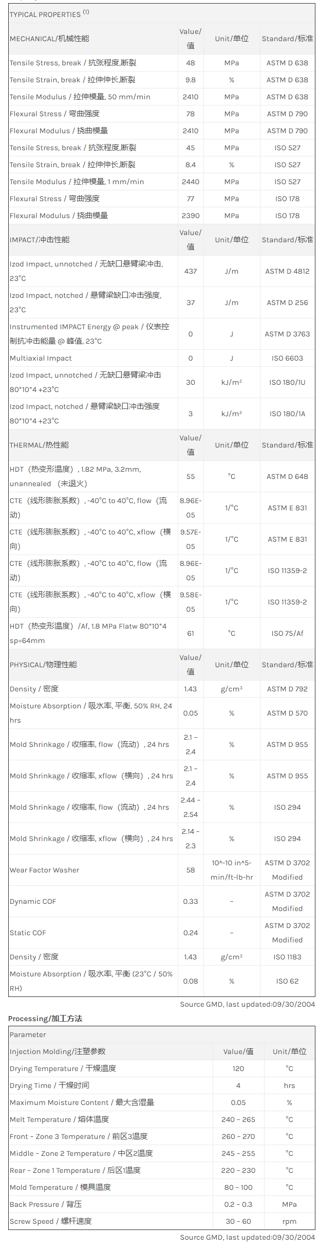 “中山LNP LUBRICOMP WL004是一种聚丁烯对苯二甲酸酯(PBT)产品,可以通过注射成型进行加工。