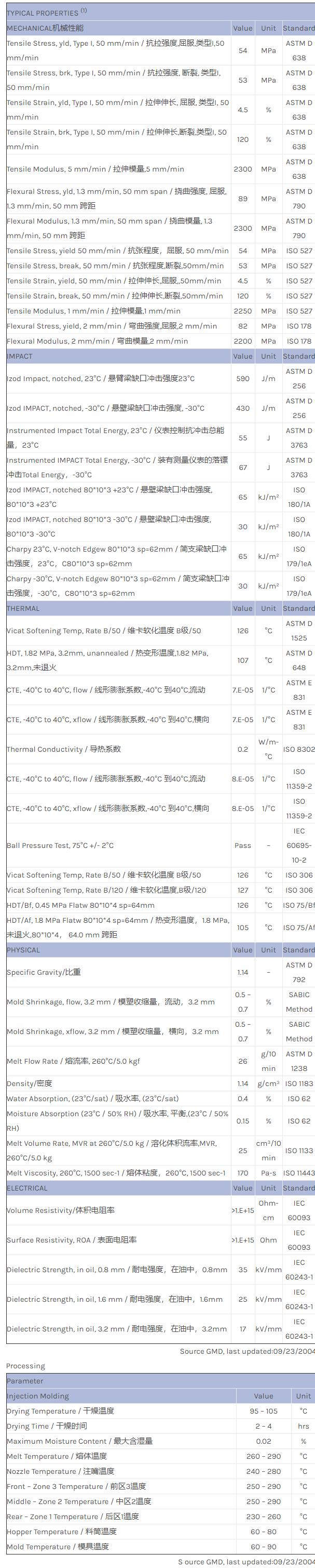 应用范围:产品描述CYCOLOY PC/ABS XCY630物性表PC+ ABS Automotive applications, High IMPACT and High Flow, ductility at low temperature, excellent properties retention after Hydrolytic and Heat Aging相关色号:XCY630-BR2E138、