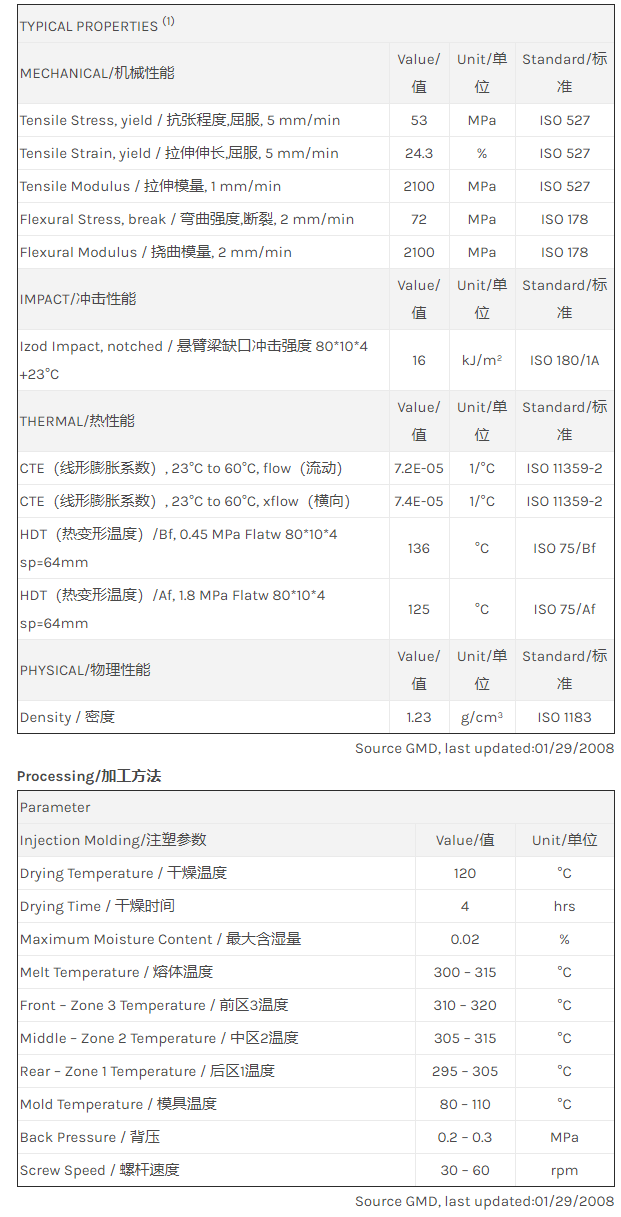 “中山LNP LUBRICOMP DP002是一种聚碳酸酯(PC)材料,加工方式为:注射成型。