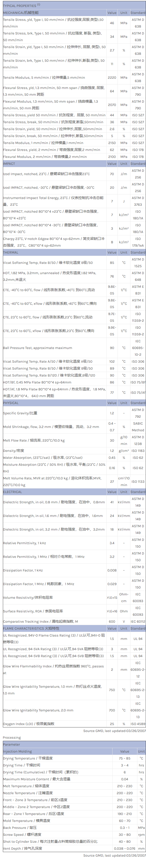 应用范围:产品描述Geloy ASA XTWFR15物性表XTWFR15 is a Flame Retardant ASA grade, offering good indoor UV performance and heat aging properties. This product typically offers better UV performance than most FR ABS grad