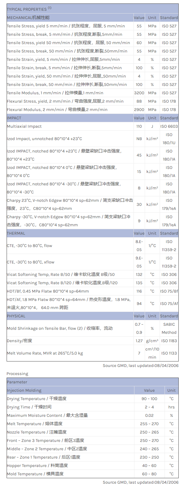 中山XENOY PC/PBT/PET EXXY0096物性表