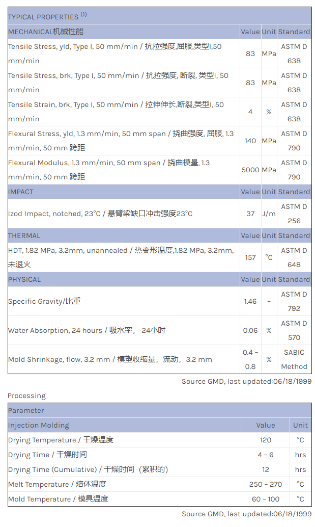 应用范围:产品描述Valox PBT CS8115U物性表15% glass filled, UV and colour stable polyester alloy.