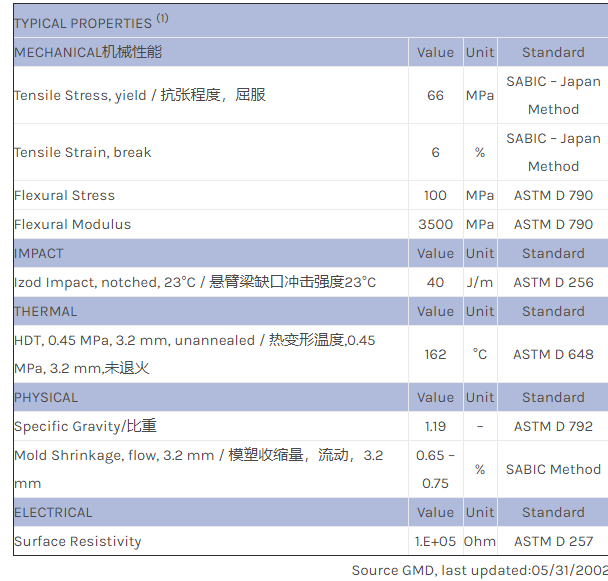 应用范围:产品描述NORYL GTX 115EM7SA物性表