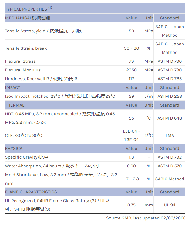 应用范围:产品描述Valox PBT VAC3003物性表